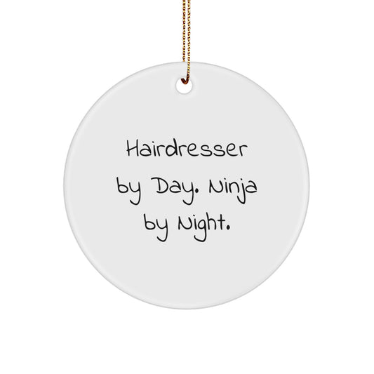 Hairdresser Gifts from Friends and Family - Circle Ornament by Day, Ninja By Night, White, 2.75" Tall, Christmas Unique Ideas