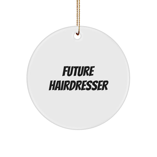 Funny Future Hairdresser Gifts from Friends for Christmas Circle Ornament, Hairdresser Inspirational Quote, White Circle Shaped Ornament Gifts for Hairdresser
