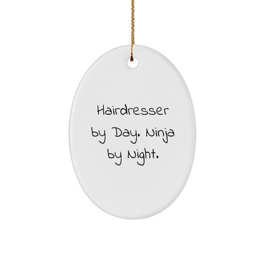 Hairdresser Gifts from Friends - 'Hairdresser By Day. Ninja By Night.' Oval Ornament, Christmas Unique Gifts for Hairdresser