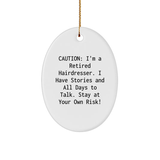 Funny Hairdresser Oval Ornament Gifts from Men to Friends at Christmas - Caution: I'm A Retired Hairdresser - Unique Christmas Decorations for Hairdresser