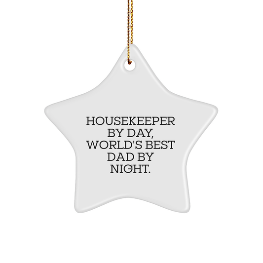 Housekeeper Gifts by Day, World's Best Dad Star Ornament by Night, Funny Christmas Decor, Gifts from Men to Women, Housekeeper Ornament