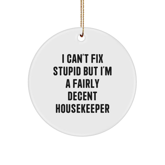 Funny Housekeeper Gifts from Friends for Housekeepers I Can't Fix Stupid But I'm A Fairly Decent Circle Ornament, White, Christmas