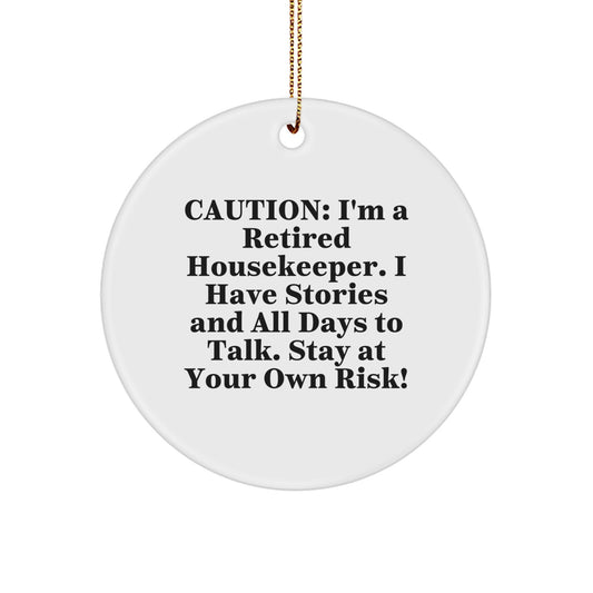 Housekeeper Gifts from Friends - Funny Quote Circle Ornament for Christmas, 'Caution: I'm A Retired Housekeeper...'