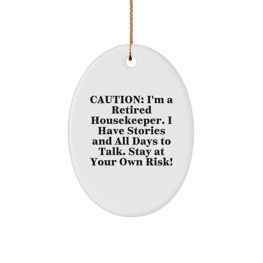 Funny Housekeeper Gifts from Friends, Housekeeper Oval Ornament for Christmas, 'Caution: I'm A Retired Housekeeper...' - A Unique and Humorous Decoration for Any Room