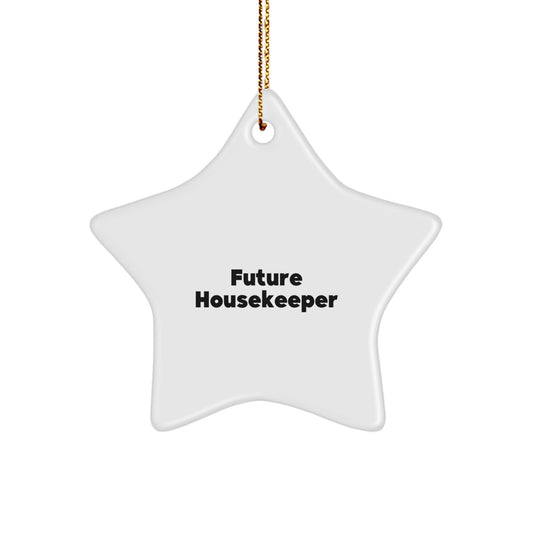 Future Housekeeper Delight Christmas Star Ornament, Gifts from Friends and Family to Housekeeper, Funny Quote, White Star Shaped, 3.25" Tall, Durable MDF and High-Gloss Plastic Finish