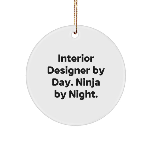 Interior Designer Gifts from Friends - Funny Circle Ornament for Women, Men, Coworkers, Family - 'Interior Designer By Day. Ninja By Night.' - Unique Christmas Unique Gift
