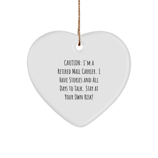 Funny Mail Carrier Gifts from Friends, Heart Ornament for Mail Carrier, Caution: I'm A Retired Mail Carrier I Have Stories And All Days To Talk Stay At Your Own Risk Christmas Unique Gifts