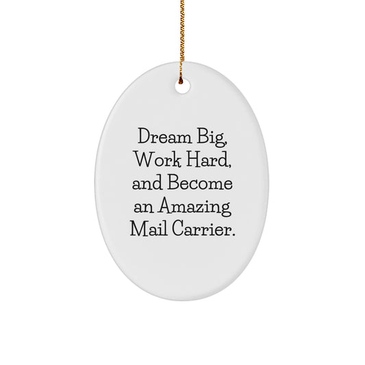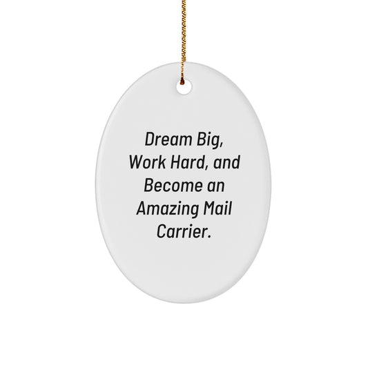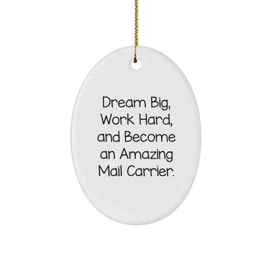 Funny Mail Carrier Gifts, Inspirational Oval Ornament for Christmas, 'Dream Big, Work Hard, And Become An Amazing Mail Carrier', Gifts from Friends for Mail Carrier