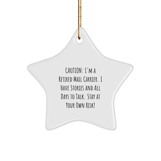 Funny Mail Carrier Gifts from Family - Star Ornament, Caution: I'm A Retired Mail Carrier, White Star Shaped Christmas Unique Gifts