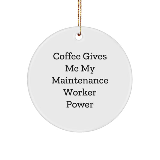 Funny Maintenance Worker Gifts for Him, Circle Ornament with Coffee Gives Me My Power, Christmas Unique Gifts from Men
