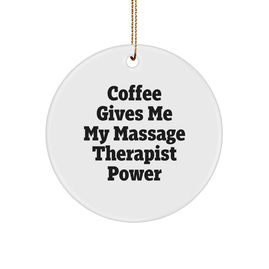 Funny Massage Therapist Gifts from Friends - 'Coffee Gives Me My Massage Therapist Power' Circle Ornament for Christmas