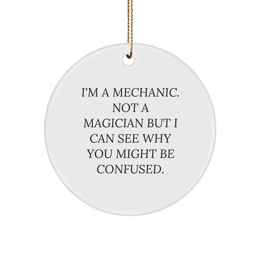 Mechanic Gifts from Friends - 'I'm A Mechanic' Christmas Circle Ornament, Funny Mechanic Present for Men, Mechanic-Themed Decoration