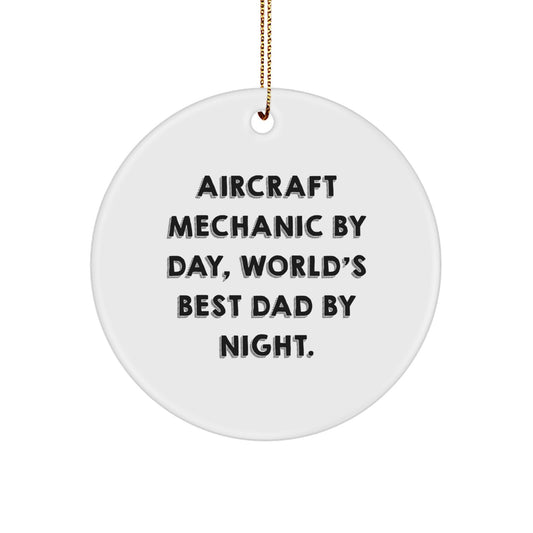 Aircraft Mechanic Gifts, 'By Day, World's Best Dad By Night' Circle Ornament, Unique Christmas Memorable Presents for Men, Gifts from Family