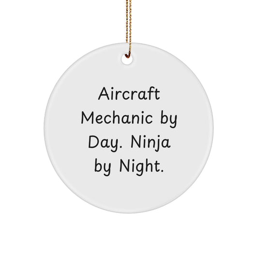 Aircraft Mechanic Gifts by Day, Ninja Ornaments by Night, Funny Christmas Circle Ornament, Gifts from Men, Aircraft Mechanic, Unique Christmas Unique Gifts