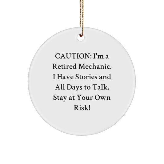 Funny Mechanic Gifts from Friends, Mechanic Circle Ornament, I'm A Retired Mechanic I Have Stories And All Days To Talk Stay At Your Own Risk! Christmas Unique Gifts for Mechanic