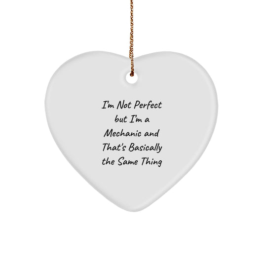 Funny Mechanic Heart Ornament Gifts from Friends to Mechanic, 'I'm Not Perfect But I'm A Mechanic' Christmas Decoration