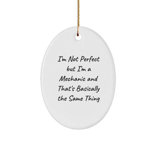 Funny Mechanic Gifts from Friends for Men, Women, and Coworkers - Oval Ornament with 'I'm Not Perfect But I'm A Mechanic And That's Basically The Same Thing' Quote for Christmas