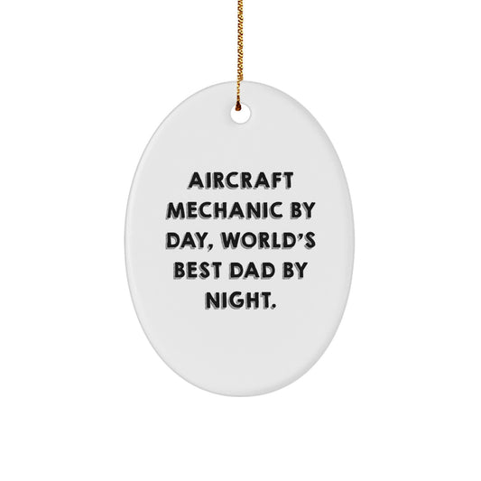 Aircraft Mechanic Gifts by Day, Funny Oval Ornament by Night for Christmas, Gifts from Family to Aircraft Mechanic
