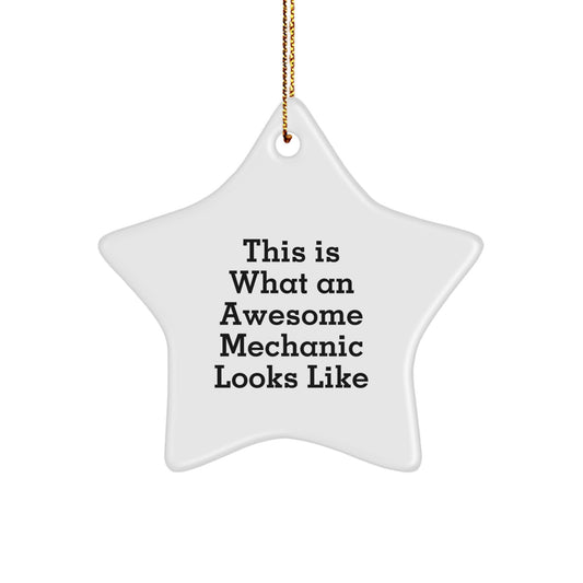 Funny Mechanic Gifts, Star Ornament with Quote 'This Is What An Awesome Mechanic Looks Like', Christmas Unique Gifts from Friends to Mechanic