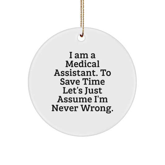 Funny Medical Assistant Gifts from Friends for Christmas Unique Circle Ornaments, 'I Am A Medical Assistant. To Save Time Let's Just Assume I'm Never Wrong.' Medical Assistant Humor