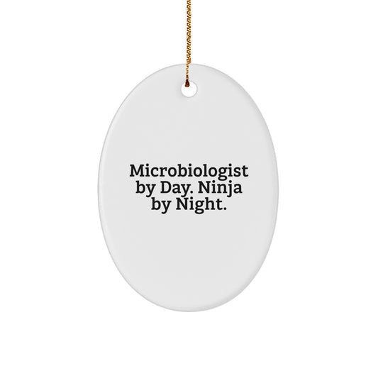 Microbiologist Gifts by Day, Ninja by Night Oval Ornament, Funny Christmas Memorable Presents for Microbiologist Friends, Family, Coworkers, Gifts from Men, Women, Friends, Family