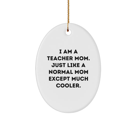 Teacher Mom Gift Ideas, Oval Ornament, Funny Quote 'I Am A Teacher Mom. Just Like A Normal Mom Except Much Cooler', Christmas Unique Gifts from Family to Teacher