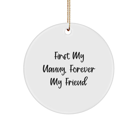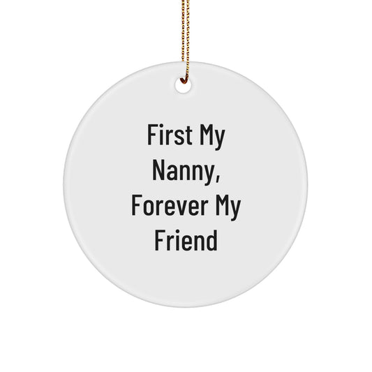 Nanny Gifts from Family, Circle Ornament with 'First My Nanny, Forever My Friend', Christmas Unique Presents for Her