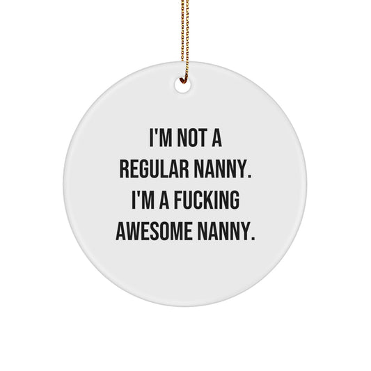 Funny Nanny Gifts, I'm Not A Regular Nanny. I'm A F--king Awesome Nanny., Circle Ornaments for Christmas