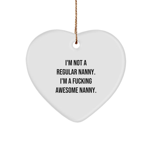 Funny Nanny Gifts from Friends, Christmas Unique Heart Ornament, I'm Not A Regular Nanny. I'm A F--king Awesome Nanny., Gifts for Nanny