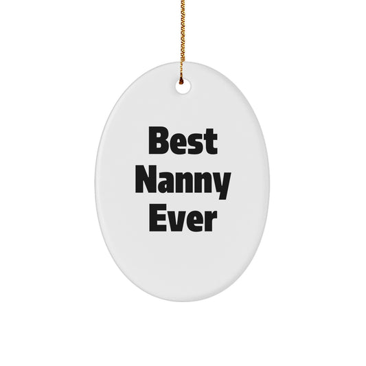 Nanny Gifts from Family - Best Nanny Ever Oval Ornament, Christmas Unique Presents for Nanny, Oval Shaped Decoration with Funny Quote