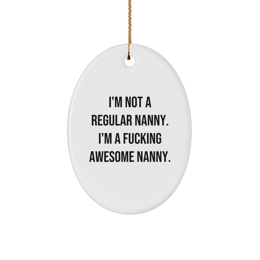 Funny Nanny Gifts from Friends for Awesome Nanny Oval Ornament, 'I'm Not A Regular Nanny. I'm A F--king Awesome Nanny.' - Christmas Unique Gifts