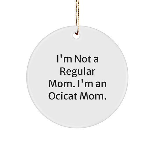 Ocicat Mom Gifts, Funny Circle Ornament for Friends, 'I'm Not A Regular Mom. I'm An Ocicat Mom.' Christmas Decor