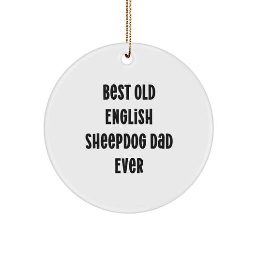 Old English Sheepdog Dad Ever Circle Ornament, Funny Gifts for Him, Christmas Unique Presents for Family and Friends from Mom, Dad, or Coworkers