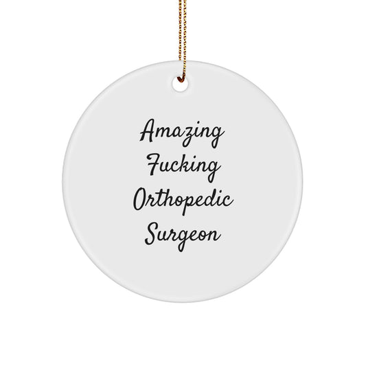 Funny Orthopedic Surgeon Gifts for Men from Women, Circle Ornament with Amazing F--king Orthopedic Surgeon Quote, Christmas Unique Holiday Decorations