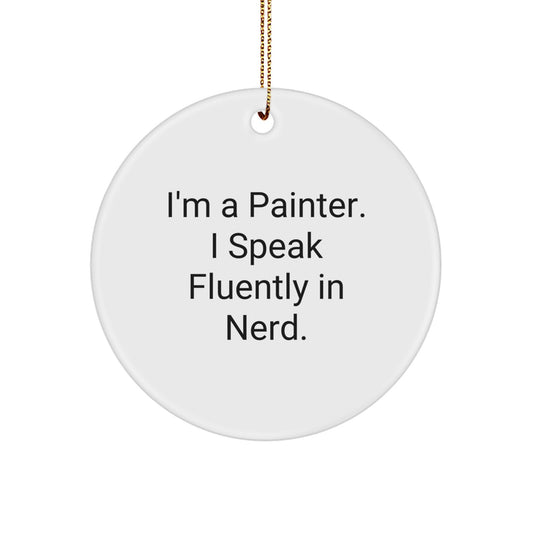 Funny Painter Gifts from Men to Friends - I'm A Painter. I Speak Fluently In genius. Circle Ornament for Painter, Men, Women, and Coworkers - Unique Christmas Unique Gifts