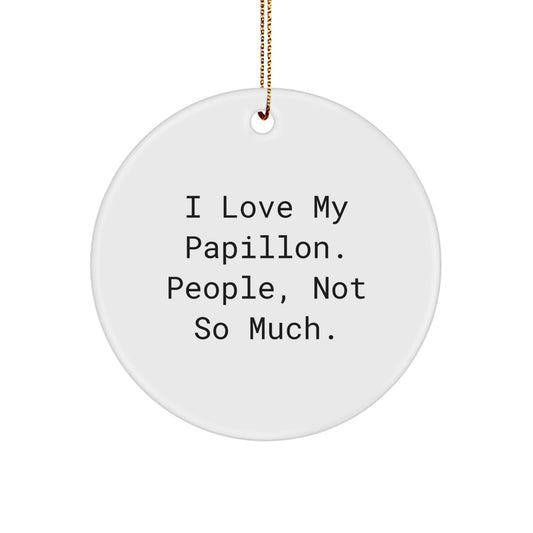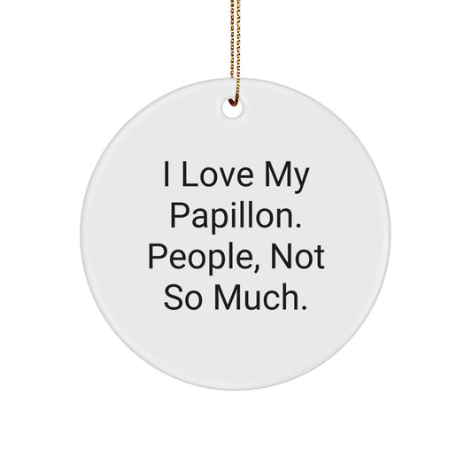 Papillon Dog Lover's Circle Ornament, Funny 'I Love My Papillon. People, Not So Much.' Gift from Friends for Family