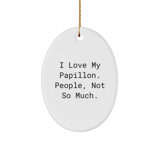 Papillon Dog Lovers Gifts, Oval Ornament, 'I Love My Papillon. People, Not So Much.' Funny Quote, Gifts from Friends, Gifts for Papillon Dog Owners, Christmas Unique Gifts