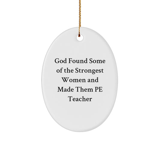 PE Teacher Gifts, Funny Oval Ornament, 'God Found Some Of The Strongest Women And Made Them PE Teacher' Quote, Gifts from Family, for PE Teacher, Oval Shaped, Christmas Unique Gifts