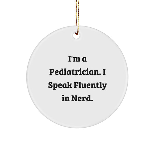 Pediatrician Gifts - Funny 'I'm A Pediatrician. I Speak Fluently In genius.' Circle Ornament for Christmas, Gifts from Friends to Family