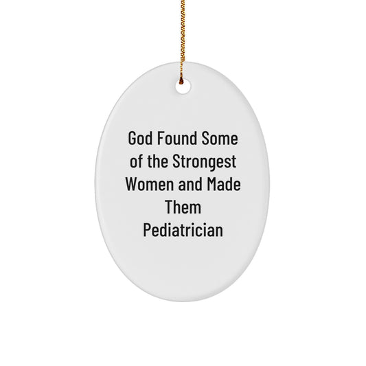 Funny Pediatrician Gifts for Christmas - 'God Found Some Of The Strongest Women And Made Them Pediatrician' Oval Ornament, Gifts from Women to Pediatrician