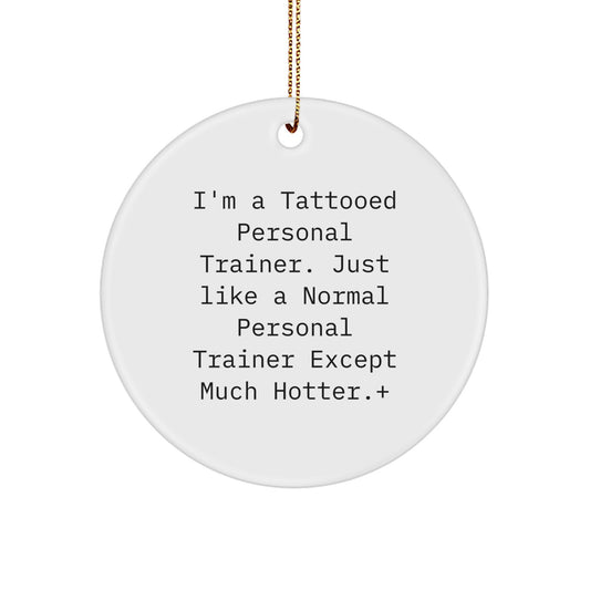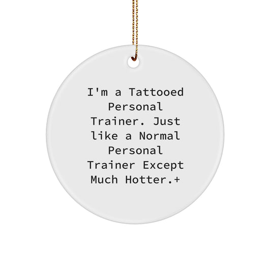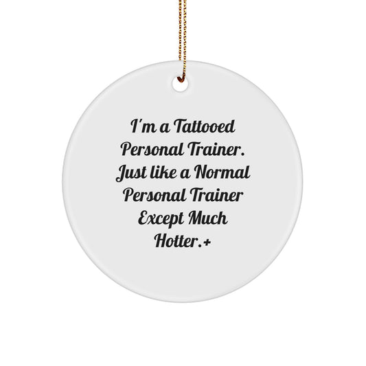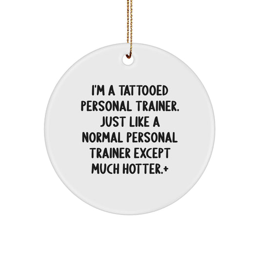 Christmas Unique Gifts from Men to Personal Trainer Friends and Family - Funny 'Tattooed Personal Trainer' Circle Ornament