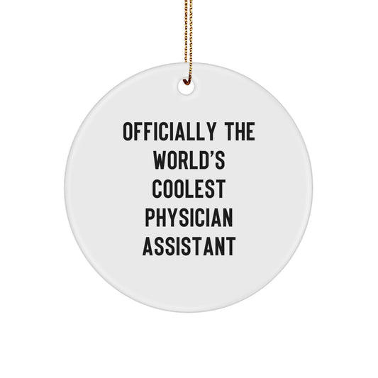 Funny Physician Assistant Gifts for Men - 'Officially The World's Coolest Physician Assistant' Circle Ornament, White, 2.75" Tall - Gifts from Family for Christmas
