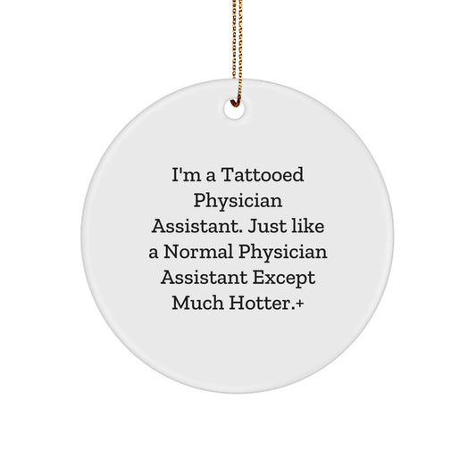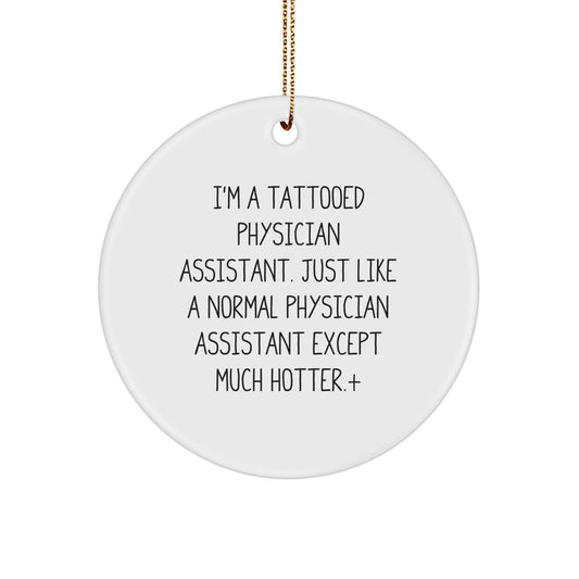 Funny Physician Assistant Gifts for Men, Unique Christmas Circle Ornament, I'm A Tattooed Physician Assistant Except Much Hotter+, Gifts from Friends to Family