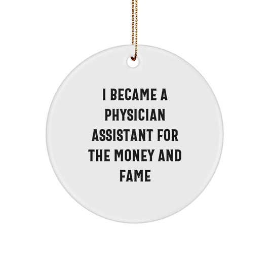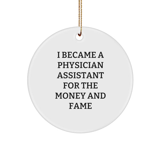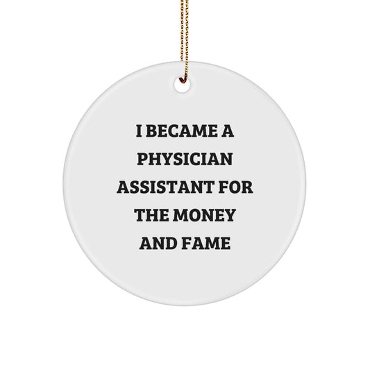 Funny Physician Assistant Christmas Unique Gifts for Him from Friends, Unique Circle Ornament, I Became A 'Physician Assistant For The Money And Fame' Quote