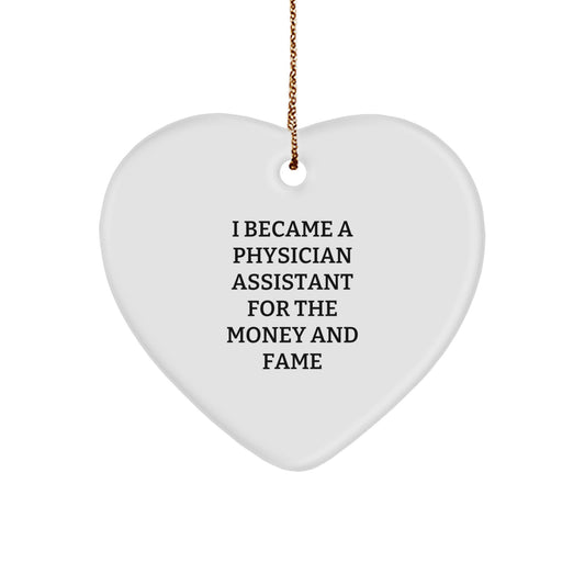 Funny Physician Assistant Gifts for Men, Heart Ornament with I Became A Physician Assistant For The Money And Fame Quote, Gifts from Friends for Christmas Cheer