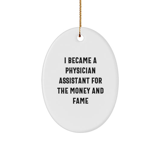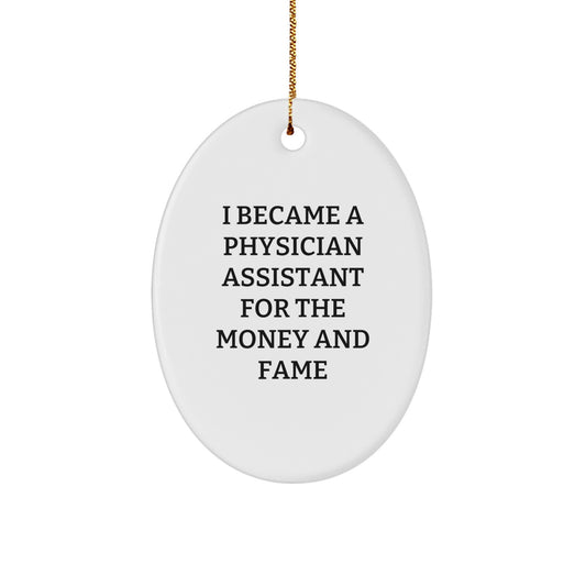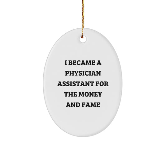 Funny Physician Assistant Gifts for Men - I Became A Physician Assistant For The Money And Fame - Oval Ornament, Gifts from Men to Family - Unique Christmas Decorations