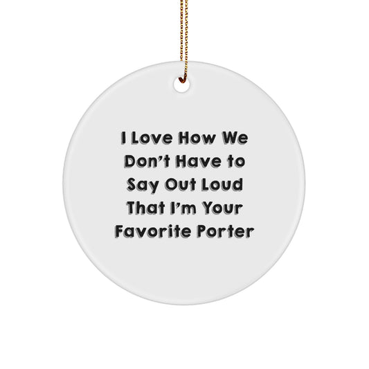 Funny Porter Gifts from Friends - I Love How We Don't Have To Say Out Loud That I'm Your Favorite Porter Circle Ornament, White, Christmas Unique Presents for Men, Women, Family