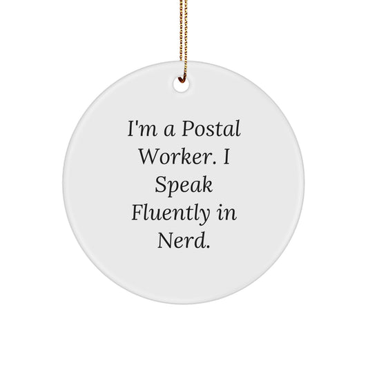 Funny Postal Worker Gifts - 'I'm A Postal Worker. I Speak Fluently In genius.' Circle Ornament for Men, Women, Friends, Coworkers, Family - Christmas Unique Gifts from Friends, Coworkers, Family