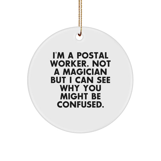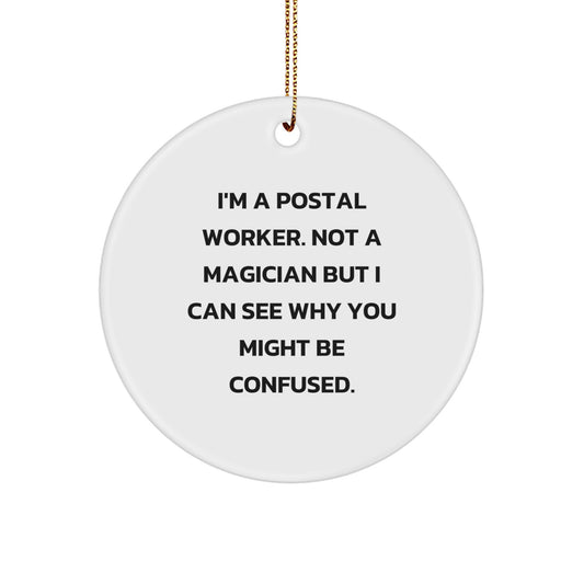 Funny Postal Worker Gifts from Friends, Circle Ornament, for Christmas Unique Gifts, 'I'm A Postal Worker. Not A Magician But I Can See Why You Might Be Confused.'