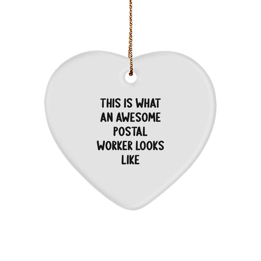 Funny Postal Worker Gifts - Heart Ornament with 'This Is What An Awesome Postal Worker Looks Like' Quote - Gifts from Friends to Family